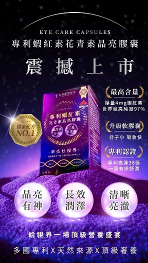 【產品推薦】專利蝦紅素+三重花青素+維生素AE晶亮膠囊